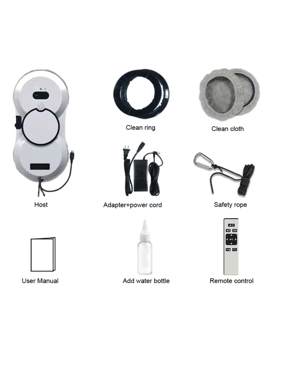 Remarque : Le robot de nettoyage doit être connectée à l'alimentation électrique pendant le fonctionnement. Le système d'alimentation sans interruption (UPS) et la batterie au lithium intégrée assurent l'adhérence à la surface même en cas de coupure de courant soudaine et empêchent le robot lave vitre sans fil de tomber par la fenêtre même sans alimentation. Une corde de sécurité super résistante offrant une protection supplémentaire