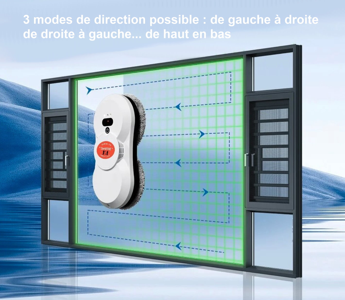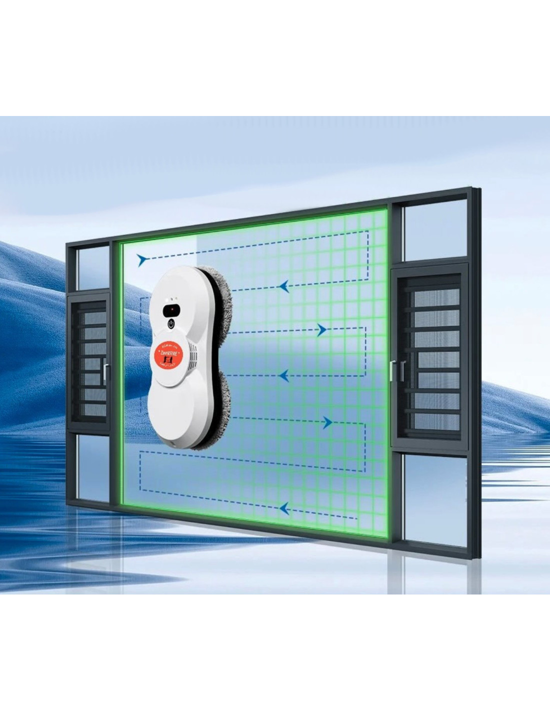 Le nettoyeur de vitres ZenVITRE dispose de trois modes de nettoyage automatiques pour répondre aux différents besoins de nettoyage. Simule la main pour nettoyer les fenêtres, aidant ainsi à résoudre le problème des travaux ménagers. La télécommande incluse vous permet d'utiliser et de contrôler facilement le robot nettoyeur de vitres à l'intérieur/à l'extérieur, offrant encore plus de confort. La tête de nettoyage à double spirale avec des chiffons de nettoyage en microfibre permet au laveur de vitre automatique de nettoyer la fenêtre sans rayer la surface et sans laisser de traces.
