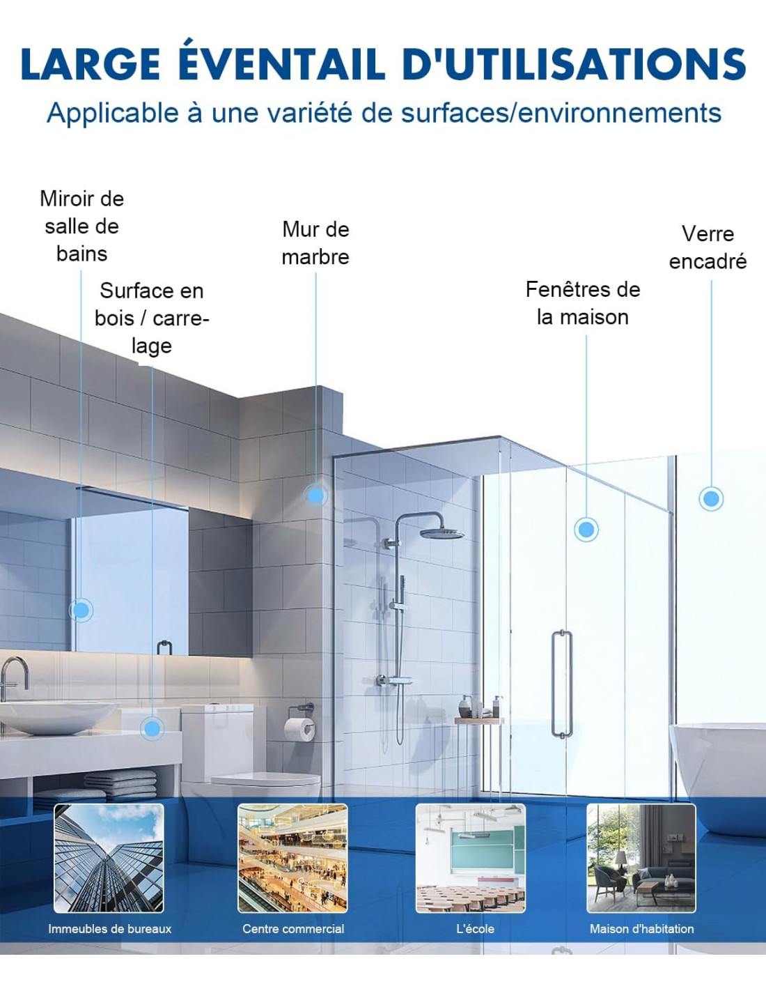 Pompe d'aspiration puissante qui maintient le lave vitre automatique collé à la vitre avec une sécurité maximale. Et la technologie IA identifie les cadres et les obstacles. convient au nettoyage d'une variété de surfaces lisses, telles que le verre, les miroirs, les grands carreaux, les plans de travail en marbre, les fenêtres intérieures et extérieures, les portes en bois, etc.